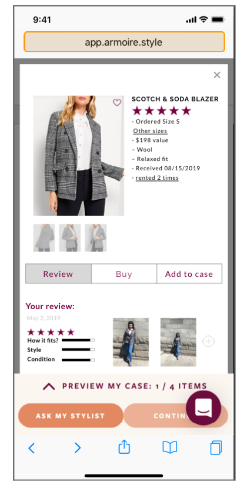 Our user testers were from all across the country and ranged in ages 30 - 37. They were all professionals from a plethora of fields - from project managers to registered dietitians. They were all members of Armoire for less than 6 months which gave us a particularly interesting insight in what new users pain points were.